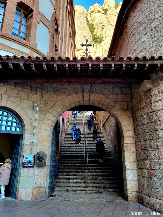▲修道院的另一個入口 我先往修道院走但並不打算一早就進去,後才想到要回齒軌火車旁的旅遊中心買Ticket to the Throne of Our Lady and to the Boys’ Choir(大教堂、黑面聖母、男童唱詩班) 門票。 當時買大教堂門票時,語言不通也不知犯了什麼錯誤,竟然我買的票沒有包括男童唱詩班,當時票口問我幾點要進去大教堂,我說13:00,因我以為可以順道聽男童唱詩班,她很驚訝問我不現在進去嗎? 當時我沒搞清楚她的意思,便離開去搭纜車了。