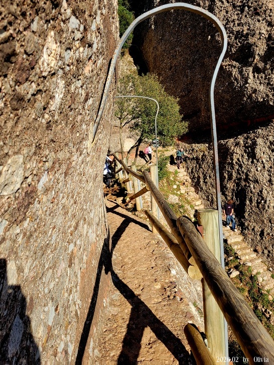 因走著走著...前方已不見人影,於是學著前面另一群人走山壁小道,然後...從圖右方▲非常陡的山路下山(不是一直都有階梯),真的是在考驗腳力。又是100個不願意。 |