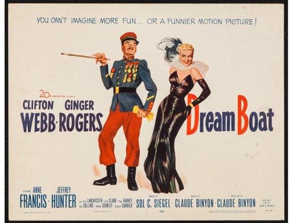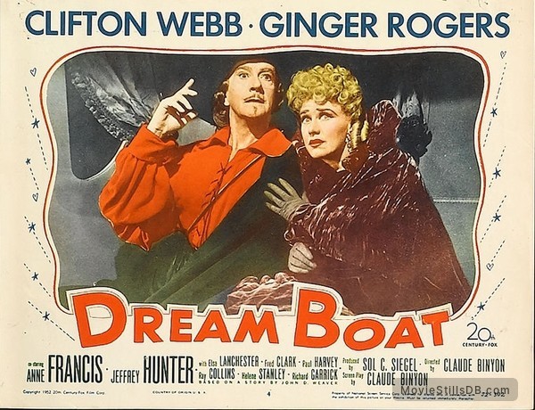 1951年底,琴姐投入二十世紀福斯的[Dreamboat]. 這部演藝諷刺喜劇片根據John D. Weaver的1950-1951年在Colliers 雜誌連載小說 [Love Man], Claude Binyon改編電影劇本, 故事描述桑頓Thornton Sayre,一所穩重的中西部大學的完美主義文學教授,鰥夫,有名成年女兒Carol. 在成為教師一位被稱為“美國夢之船”的前無聲電影明星── Bruce Blair. 葛洛麗亞Gloria Marlowe──桑頓以前的女主角,在主持的電視節目中播出兩人主演的老電影,讓教授和他的大學都感到非常尷尬。 桑頓將案件一路告上法庭,尋求妥協協議:他將允許他的電影在電視上播出,只要它們沒有被“篡改”以適應商業代言。 隨後的宣傳使桑頓失去了大學工作,但對他的老電影重新產生了興趣,導致了一份新的電影合同。 儘管無聲電影和歌唱廣告很容易成為諷刺對象,但 Dreamboat 仍然能帶來笑聲, 桑頓並與葛洛麗亞墜入愛河並計劃結婚。 幾個月後,桑頓主演電影[Sitting Pretty]中的首映式——葛洛麗亞隨後向桑頓透露,她已經買下了他的合同,現在是他的老闆。