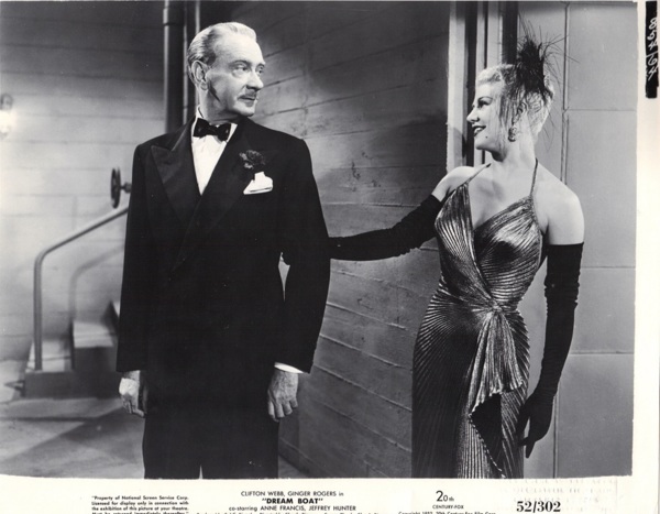 男主角克利夫頓韋柏(Clifton Webb)掛頭牌(as Thornton Sayre / "Dreamboat" /Bruce Blair). 琴姐(as Gloria Marlowe)排名第二. 共同主演:Anne Francis +Jeffrey Hunter. 要角:Elsa Lanchester,Fred Clark,Paul Harvey,Ray Collins,Helene Stanley. 1952年 7月24日《好萊塢報導》提到,瑪琳黛德麗最初被提供備提供此角,被拒. 在女主角“葛洛麗亞馬洛”表演的夜總會曲目中,羅傑絲穿著一件低胸金色晚禮服, 瑪麗蓮·夢露後來在[Gentlemen Prefer Blondes/紳士愛美人]和一些宣傳劇照中也穿這件晚禮服。