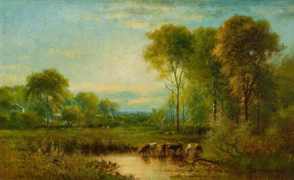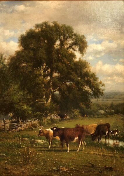 ******************* 美國蘇格蘭裔畫家──哈德遜河畫派成員──以田園風光與牛隻聞名的[詹姆斯.麥克杜格爾.哈特] 詹姆斯.麥克杜格爾.哈特(James McDougal Hart,1828年5月-1901年10月),蘇格蘭出生的美國哈德遜河畫派風景畫家和動物畫家。 |