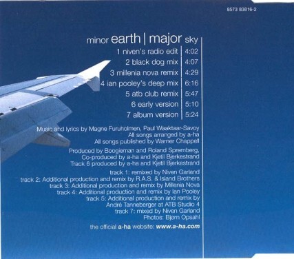 挪威三人樂團阿哈(A-Ha)在1994年第五張錄音室大碟[Memorial Beach](1993)未能取得先前專輯的商業成功後,陷入停頓期。 繼1998年諾貝爾和平獎音樂會上的表演後,阿哈開始錄製他們的第六張大碟[Minor Earth Major Sky/小地球 大天空],在2000年4月推出 (WEA出版) 製作群包括 A-ha,Kjetil Bjerkestrand,Millenia Nova,Ras,Roland Spremberg,Andre Tanneberger,Pål Waaktaar等. 大碟走流行搖滾,合成流行,新浪潮路線,樂評良好.