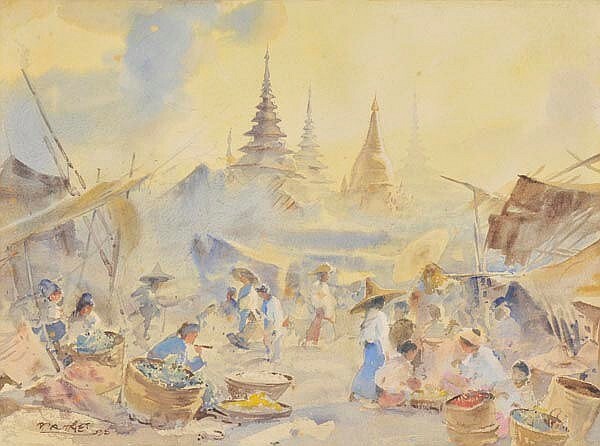 ![]() 緬甸現代主義繪畫之父──緬甸藝術實驗的倡導者──[巴特]巴特(Ba Thet,1903-1972 年; ဘသက်)緬甸畫家,曾在曼德勒工作,被譽為緬甸藝術實驗的倡導者。他是 Kin Maung 的合夥人,Kin Maung 在緬甸通常被稱為 Kin Maung(班克),以區別於另一位著名畫家 Kin Maung(仰光)。Kin Maung(班克)普遍被認為是緬甸的「現代主義繪畫之父」。