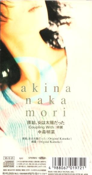日本歌壇女皇[中森明菜]B面歌曲佳作──流行/舞曲/拉丁/放克──[綺麗] 1995年6月,將滿30歲的日本歌壇天后中森明菜推出第31首單曲[原始、女は太陽だった/原始女人是太陽] [原始、女は太陽だった]登上公信榜#15,榜上銷售數字賣出10.02萬張 B面歌曲是[綺麗] 夏野芹子作詞,清岡千穂作曲,岩崎文紀編曲 中森製作成一首融合流行,舞曲,拉丁,放克於一身的歌曲,帶有夏日熱情氛圍 節奏輕快,編曲繁複,跌宕起伏,明菜沙啞的嗓音展現其寬後音域,受到好評.