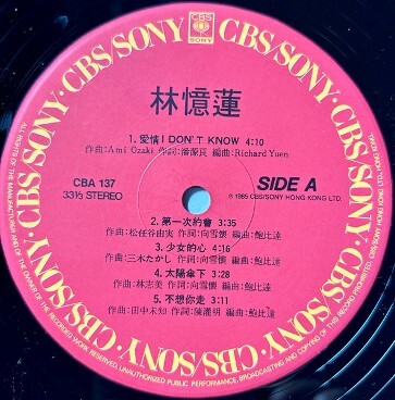 1966年4月,林憶蓮(Sandy Lam)出生於英屬時期香港. 父親是中樂團成員的二胡樂師,母親李佩華則鍾情紹興戲,也在酒樓唱小曲幫忙補貼家用, 童年時分別在美孚和在上海人聚居的北角明園西街度過. 憶蓮從小就喜歡接觸音樂,但從未想過要當歌手,反而夢想成為一個畫家。 1982年,林憶蓮唸中四時,無心插柳地成為商業二台的兼職DJ。中五畢業後她又當了一年全職DJ。 1983年,林憶蓮被唱片公司CBS Sony的高層及唱片監製 Tony Lee 李添(作曲人李雅桑)簽下成為合約歌手。不過,公司沒有馬上為她推出專輯。 1984-85年期間,她拍過一些電影,又演過電視劇,並當過電視節目《青春道上》的主持。 1984年9月,她更以「611」的藝名與林姍姍、陳慧嫻、李麗蕊、鮑翠薇在大專會堂演出青春音樂劇《初戀五重奏》。 1985年4月,剛滿19歳的林憶蓮推出個人首張同名粵語大碟[林憶蓮](CBS/Sony唱片發行),由陳傳謙、馮鏡輝製作,走日系少女偶像風格。 首支派台主打為[愛情 I Dont Know/愛情我不知道]改編自日本歌壇女皇松田聖子的暢銷曲[天使のウィンク/天使眨眼]。 由尾崎亜美創作,潘源良改寫粵語詞,Richard Yuen編曲, 被製作成一首合成流行曲,旋律悅耳,節奏輕快,Sandy的嗓音稚嫩甜美. [愛情 I Dont Know]登上中文歌曲龍虎榜(RTHK)#6. 剛出道時的林憶蓮無論外表和唱功都十分稚嫩,且形象部分過於模仿日本偶像,難以引起聽眾迴響,結果專輯銷量不理想 連金唱片(2.5萬張)都未拿到。 當時林憶蓮對自己的演唱能力沒有信心,覺得自己長得並不好看,且又不知道如何面對傳媒。 於是她向唱片公司表示自己不適合當歌手,但公司老闆勸她再發一張專輯才做決定。 結果從第二張大碟後,林憶蓮的事業便扶搖直上.
