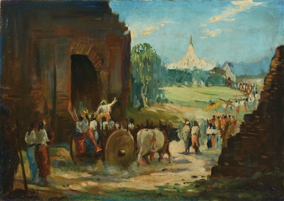 年緬甸獨立後,他繼續練習在殖民時期學到的歐洲繪畫技巧。