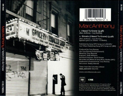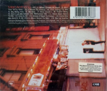 1999年9月,31歲的美國拉丁裔歌手馬克安東尼(Marc Anthony)推出第四張錄音室大碟,也是第一張英文專輯[Marc Anthony](Columbia唱片發行),進軍國際主流市場.