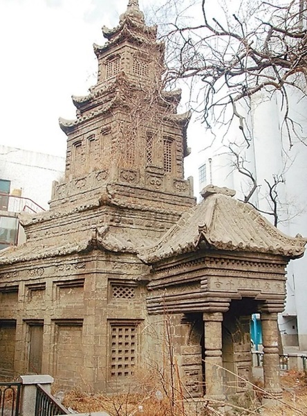 民國風水建築──三層樓閣式青石塔──黑龍江哈爾濱[張氏墓塔]