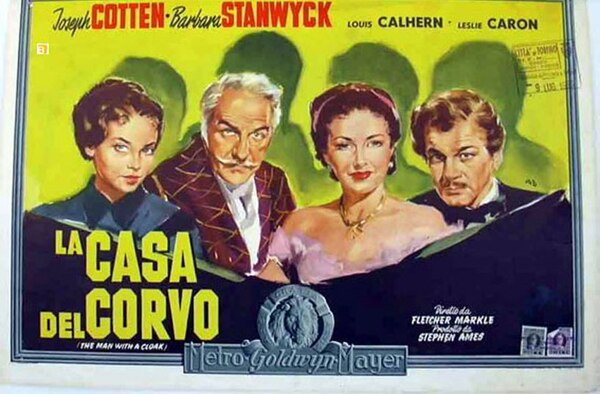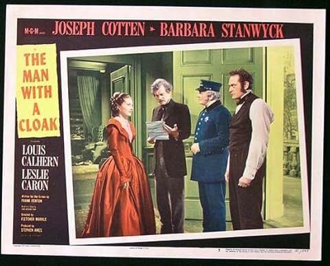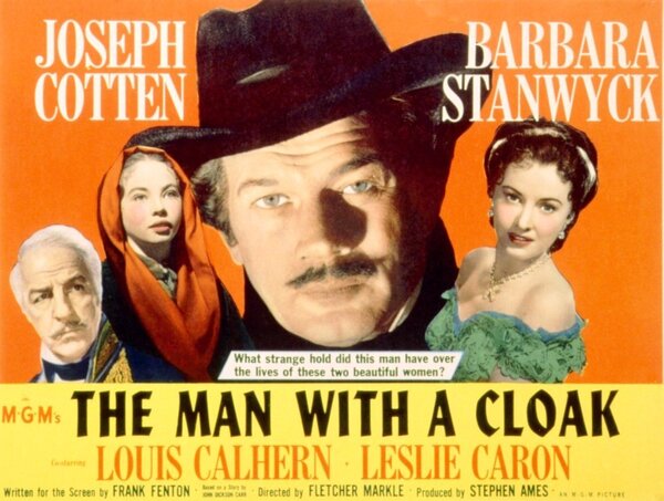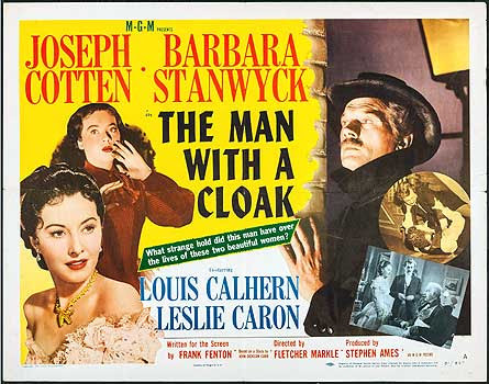下部電影是MGM[The Man with a Cloak/斗篷男子]. 這部古裝犯罪驚悚片改編自John Dickson Carr在《Ellery Queen Mystery Magazine/艾勒里昆因懸疑雜誌》(1950年4月) 的短篇小說《The Gentleman from Paris/巴黎紳士》──這也是電影暫定名稱. Frank Fenton 改編劇本.