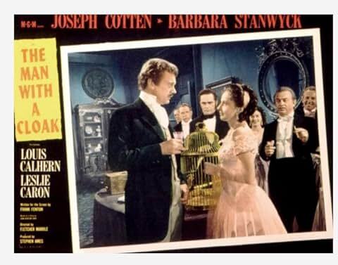 [The Man with a Cloak]中有一些巧妙的小想法。 有很多陰謀,但發生的事情並不總是像看起來那麼明顯,而且有一些很好的諷刺意味。 有時它會變得有點太聰明了,但它總是很有趣。 這些表演,尤其是史坦葳和Calhern的表演,足以成為觀看它的理由。 這絕對是芭芭拉史坦葳粉絲必看的電影……