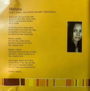 Todo acabó De ti ya no hay nada Sé que es mejor Dejar que te vayas No sé, si me arrepienta mañana Sin tu mirada No dormiré Hoy no tengo ganas Sé que tendré Una noche muy larga Las lágrimas me llenan la cara La angustia de estar equivocada Mañana Mañana Será otro día y tendré calma Buscaré la forma de vivir sin ti Hoy, necesito llorar Mañana Mañana Tendré las fuerzas que hoy me faltan Seré libre y volveré a pensar en mí Hoy, necesito llorar Cómo lograr Sacarte de mi alma O recomenzar Si hay algo que falta Yo sé que es imposible olvidarte Sin ti yo tengo que acostumbrarme Mañana Mañana Será otro día y tendré calma Buscaré la forma de vivir sin ti Hoy, necesito llorar Mañana Mañana Tendré las fuerzas que hoy me faltan Seré libre y volveré a pensar en mí Hoy, necesito llorar Uoh-oh. oih-oh Mañana Mañana Será otro día y tendré calma Buscaré la forma de vivir sin ti Hoy, necesito llorar Mañana Mañana Tendré las fuerzas que hoy me faltan Seré libre y volveré a pensar en mí Hoy, necesito llorar Uh-uh, uh-uh-uh Uh-uh, uh-uh, uh-uh-uh, uh 2000年,智利實力歌手米莉安姆.埃南德斯(Myriam Hernández)與當時的經紀人兼丈夫Jorge Saint-Jean決定帶著兩個孩子離開智利,定居邁阿密,以鞏固她的國際職業生涯。 2000年8月,35歲的米莉安姆推出第五張大碟[+ y más.../+ 以及更多...](Sony Discos發行), 這回由米莉安姆獨力製作. 專輯將浪漫歌曲與流行音樂的更多現代元素以及電子音樂融為一體。 [+ y más.../+ 以及更多...]登上致力專輯榜#4, 美國告示牌副榜──拉丁專輯榜#18 拉丁流行專輯#8。