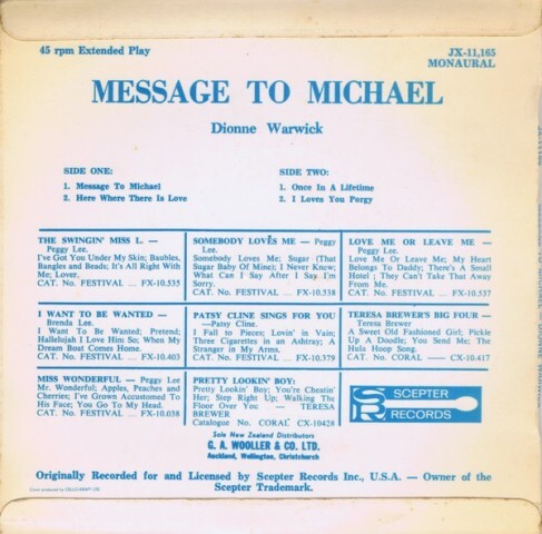 1966年3月,25歲的美國黑人歌姬狄昂.華薇克(Dionne Warwick)推出 單曲為[Message to Michael/給麥可的訊息](Scepter唱片發行) 登上Billboard單曲榜#8, 為狄昂事業第三首Top10熱門曲. 其B面歌曲是[Here Where There Is Love/這裡有愛]. 由導師Burt Bacharach, Hal David創作,並製作成一首流行/靈魂/R&B, 狄昂以細膩的唱腔演繹,和聲烘托其音色特質. 此曲收在1966年12月發行,狄昂第六張錄音室大碟[Here Where There Is Love],並以歌名名之. [Here Where There Is Love]美國Billboard專輯榜#18,副榜──R&B專輯榜冠軍,賣出100萬張,取得金唱片(1970認證) 英國專輯榜#39.