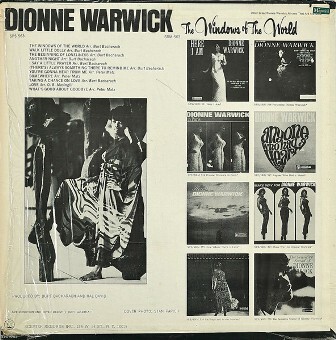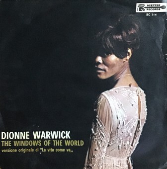 美國非裔歌姬[狄昂.華薇克]──流行抒情曲──[The Windows of the World/世界之窗] The windows of the world are covered with rain The windows of the world are covered with rain The windows of the world are covered with rain The windows of the world are covered with rain 1967年8月底,26歲半的美國非裔歌姬狄昂.華薇克(Dionne Warwick)推出第八張大碟[The Windows of the World/世界之窗](Scepter出版) 由導師Burt Bacharach, Hal David製作 樂評優秀,為其事業最傑出作品之一 大碟登上美國Billboard專輯榜#22(1967年榜#81) 副榜──R&B榜#11(1967年榜#50) 標題曲[The Windows of the World]為大碟第三主打, 由Burt Bacharach, Hal David創作, [The Windows of the World]在作曲家的經典作品中獨樹一幟,因為它是一首抗議歌曲。 歌詞直白卻又委婉地哀嘆美國捲入越南戰爭。 編曲帶有淡淡的亞洲風味,弦樂以日本箏的風格撥動,鈸則讓人想起雨滴落在窗戶上的聲音。 Burt Bacharach, Hal David創作製作成一首流行抒情曲, 在優美的旋律中,狄昂以輕柔的唱腔演繹. 此曲代表華薇克在主題上的突破。她以浪漫民謠歌手的身份開啟自己的職業生涯, [The Windows of the World]登上美國Billboard單曲榜#32 副榜──R&B專輯榜#24,Easy Listening榜#32. 加拿大#20.