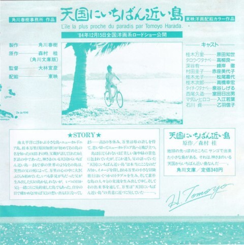 LOVE 単純な LOVE 微笑みが あなたの瞳に 虹の輪を書くの LOVE LET.S STAY TOGETHER LOVE 誰よりも 天国にあなた いちばん近い島 1984年10月10日,將滿17歲的日本偶像紅星原田知世推出第6首單曲[天国にいちばん近い島/離天国最近的島](CBS Sony/KADOKAWA RECORDS發行) 由康珍化作詞.林哲司作曲・萩田光雄編曲.角川春樹製作 這是一首流行/歌謠曲, 節奏簡單,原田以她仍然稚嫩的少女嗓音輕柔表達. 這是同年上映的同名電影[天国にいちばん近い島/離天国最近的島]的主題曲,原田也主演這部電影。 單曲唱片在電影上映前兩個月發行。正反兩面歌曲皆收錄在電影原聲帶中。 歌詞、作曲和編曲皆由與上一首單曲《愛情物語》相同的作者創作。 這首主打歌也被用來作為東芝「SUGAR」的廣告歌曲。 [天国にいちばん近い島/離天国最近的島]登上Oricon單曲榜#1,為知世事業唯一冠軍曲. 停留16週,榜上銷售數字27.6萬張,名列1984年終暢銷單曲榜#71 此曲收在1984年11月28日發行,原田第二張大碟[撫子純情] [坂本龍一 製作/角川春樹(執行製作)] 大碟登上Oricon專輯榜#2,名列1985年終暢銷專輯榜#48.