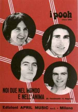 1962年成立於波隆那的Pooh(呸)是義大利流行樂團. 1966年開始發行唱片. 1972年,Pooh推出單曲[Noi due nel mondo e nellanima/我們兩個在世界和靈魂裡](CBS唱片發行) 由 Roby Facchinetti 和 Valerio Negrini 創作,Giancarlo Lucariello製作成一首流行/搖滾抒情曲, 編曲精緻,在緩慢的弦樂與鋼琴聲中,主唱將歌曲逐漸帶向高潮. 後半部主唱與和聲交織在一起,營造出迷幻氛圍.