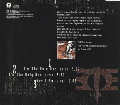 1993年9月,梅麗莎推出首支單曲[Im the Only One/我是唯一],由梅麗莎本人創作,探討的是‘非一夫一妻制’的關係。 伊瑟麗姬,Hugh Padgham製作成一首藍調搖滾/流行搖滾, 在中慢板的節奏中.梅麗莎以激昂的唱腔詮釋. [Im the Only One]最初登上加拿大單曲榜#12(1993年榜#96) 荷蘭#26. 在美國,這首歌發展勢頭緩慢. 但隨著第二單曲[Come to My Window]的成功,1994年被重新發行,