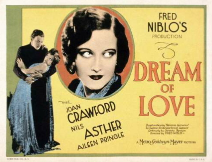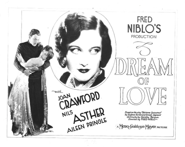 [Dream of Love]是傳記劇情片 這部電影改編自 1849 年Eugène Scribe 和Ernest Legouvé創作的法國悲劇《Adrienne Lecouvreur》,描述這名法國名伶的生平. Dorothy Farnum編劇作者.Marian Ainslee+Ruth Cummings+John Howard Lawson標題字幕卡.