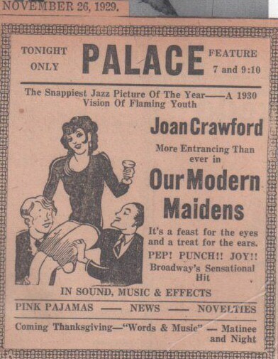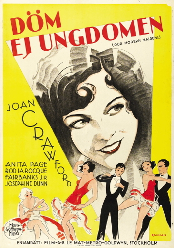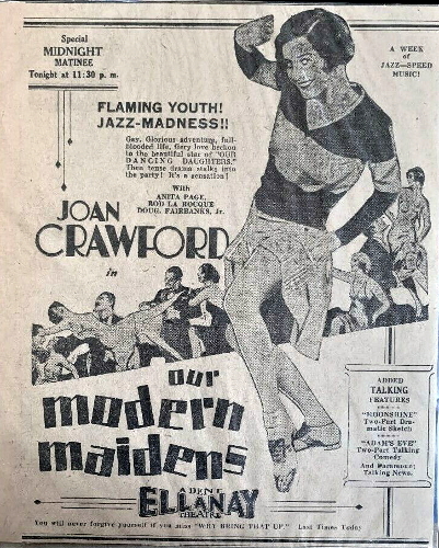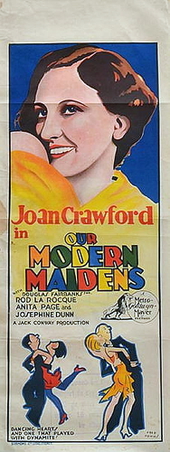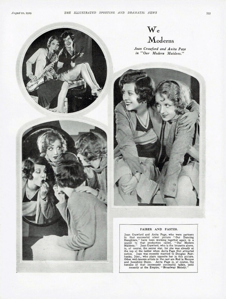 下部電影[Our Modern Maidens/我們的現代少女]是瓊另一部名作, 雖然片名參考瓊去年的成功作品[Our Dancing Daughters],但內容既不是續集,也不涉及前作的情節。 瓊克勞馥自1928年中期成為米高梅最受歡迎的明星之一。 她的優勢在於塑造了年輕、愛好玩樂的「輕佻女郎」 克勞馥在年輕觀眾中日益增長的人氣很大程度上受到她與小道格拉斯范朋克的關係影響,媒體對這段關係的進展進行數月的追踪和評論。 MGM利用公眾的持續興趣,讓瓊和范朋克一起出演[Our Modern Maidens]。