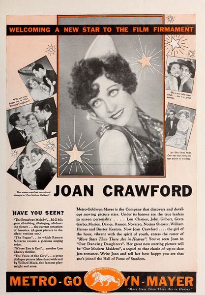 1929年2月。在1928年秋天[Our Dancing Daughters]大獲成功後,米高梅的一位會計向片廠律師詢問瓊的官方身份:“瓊克勞馥能被視為明星嗎?”答案是:“是的。”