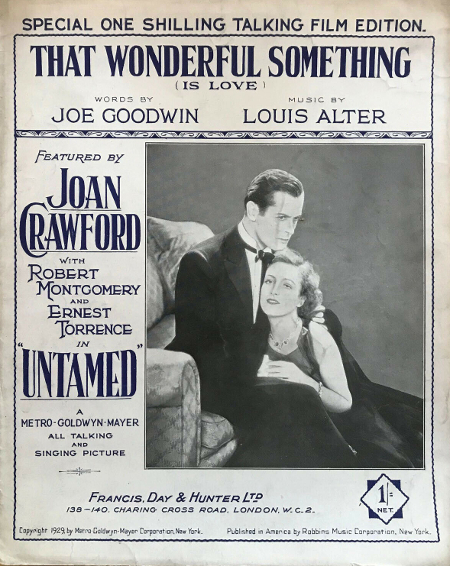 在[Untamed]的開場場景中,克勞馥邊跳舞邊唱主題曲[Chant of the Jungle/叢林之歌]。 這首歌於 1929 年風靡一時。 她和蒙哥馬利還在影片後期演唱Louis Alter和Arthur Freed的歌曲“That Wonderful Something Is Love”。