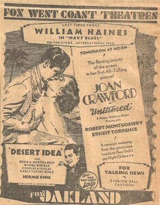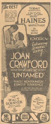 瓊的首部個人主演有聲電影是[Untamed/未馴服/野性難馴/花嫁修業]. [Untamed]拍攝於[The Hollywood Revue of 1929]之後,但卻提前一個月,於1929年11月上映。