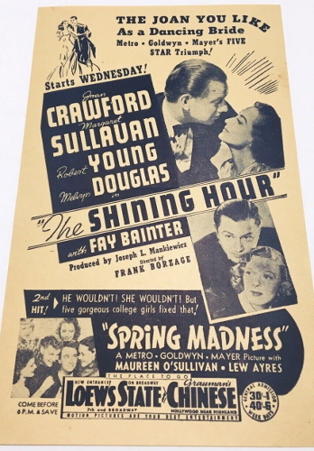 [The Shining Hour]失敗了,但卻是高尚的。它在百老匯取得巨大成功。然而,瑪格麗特蘇利文、羅伯楊、茂文道格拉斯和我都一敗塗地,我想大概就是在這個時候,我的忠實粉絲們開始減少的時候。你不能讓他們繼續看爛片。。