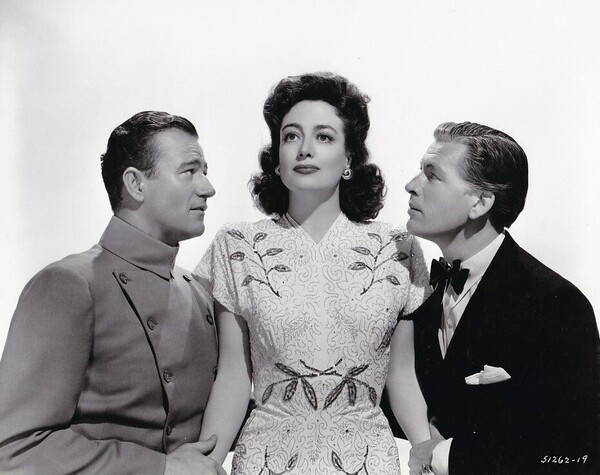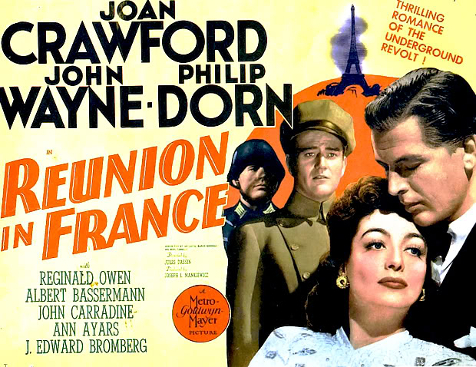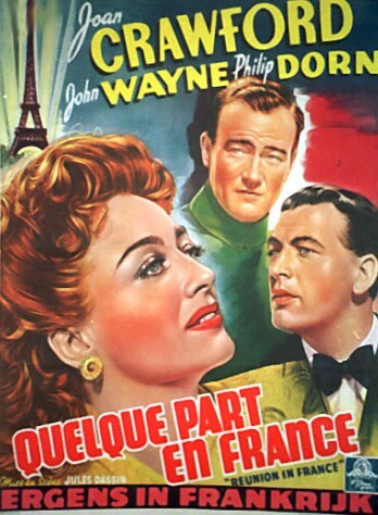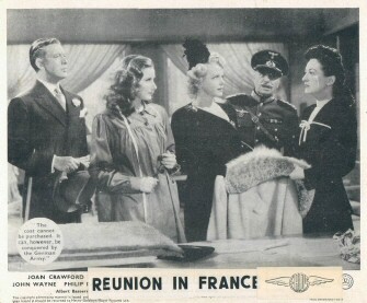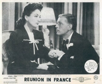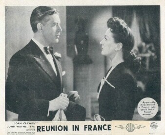 它的確有一些有趣且令人印象深刻的資歷… 克勞馥同意拍攝《Reunion in France》的原因之一是,她被承諾與約翰韋恩搭檔,而她一直很想見到這位演員。