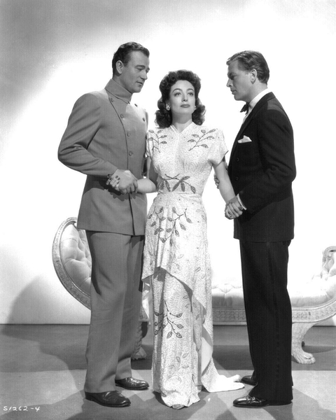 根據傳記作家Lawrence J. Quirk和William Schoell在《Joan Crawford: The Essential Biography》中記載,「……瓊當時正對約翰韋恩虎視眈眈……她在更衣室裡對他展開攻勢,韋恩使出渾身解數拒絕了她。他已婚,根本沒心情談情說愛。 瓊可沒那麼容易接受拒絕,她不只一次主動投懷抱……韋恩對此更多的是覺得好笑而不是生氣。 即使到了晚年,瓊仍然會為這個錯失的男人以及因為太過迷戀他而拍的那部糟糕的電影耿耿於懷。 “那部爛片!就因為我想和韋恩上床!而他只會演牛仔。我們倆簡直是天作之合!” *