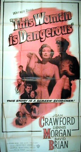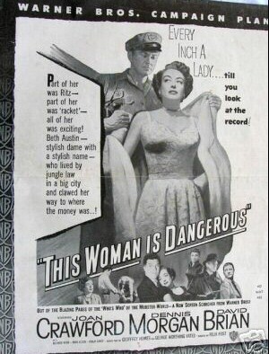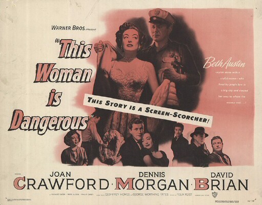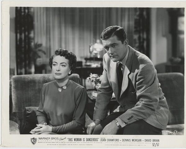 [This Woman is Dangerous]並不是片廠負責人傑克華納的首要重點。 一方面,劇本完全是B級片的素材。 一方面,黑幫改邪歸正劇本在1950年代已經變得陳詞濫調, 一些消息來源甚至暗示華納向克勞馥提供這個故事,希望這位昂貴的明星會拒絕,這樣他就可以讓她停職。這也是他向丹尼斯摩根推薦眼外科醫生這個角色的原因。 令華納驚訝的是,兩位明星都接受了這部電影,儘管克勞馥隨後指示她的經紀人通過談判終止她在華納的合約。 她不會留在她覺得不被需要的地方。 此外,她找到了一個非常有前途的劇本──獨立製作的[Sudden Fear],並希望在不用華納外借的情況下拍攝這部電影。 這為瓊贏得第三次奧斯卡金像獎提名。