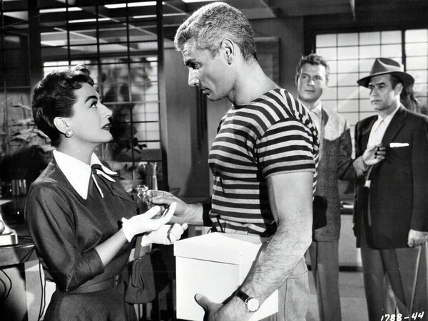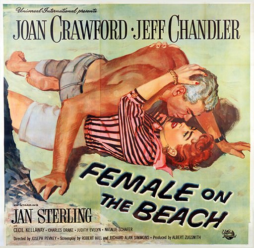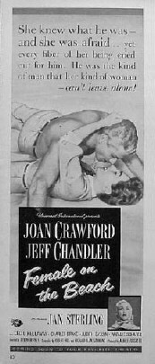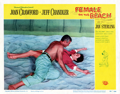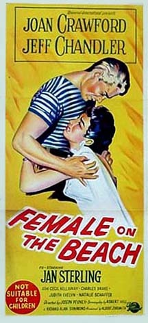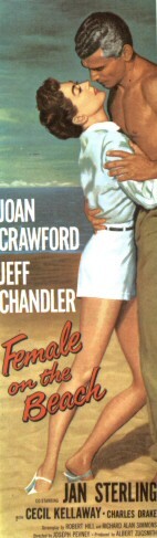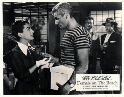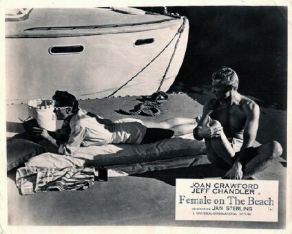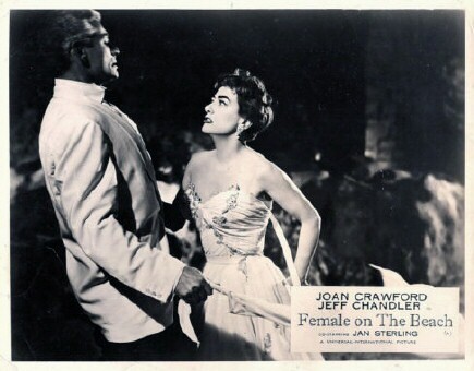 三年後,當她與環球影業總裁Milton Rackmil交往時,Rackmil邀請她出演類似的角色… Zugsmith想要的那種劇本,最後卻成了電影史上最露骨的劇本之一。雖然以現代標準來看並不算過火,但片中大量的性暗示還是讓[Female on the Beach]被美國道德聯盟評為成人級。