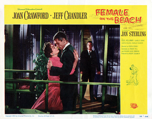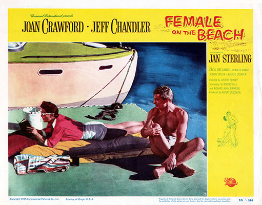 [Female on the Beach]票房表現良好,足以讓瓊的演藝事業繼續下去,並讓導演Zugsmith在環球影業獲得一份更穩定的工作。 克勞馥並沒有留在環球影業,而是與哥倫比亞影業簽了一份利潤豐厚的短期合約。 她與Rackmil的合作關係也未能長久。