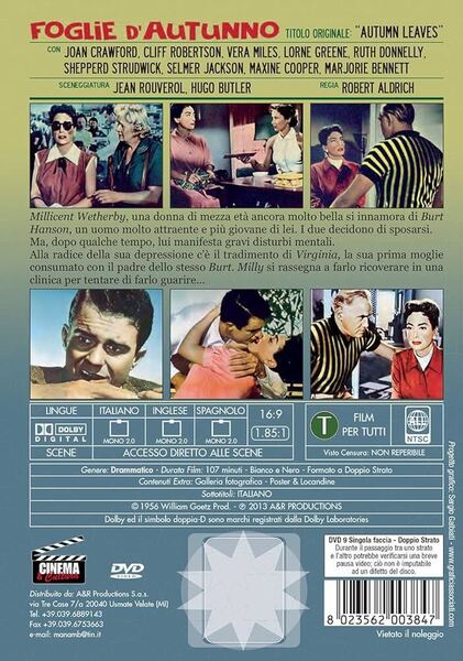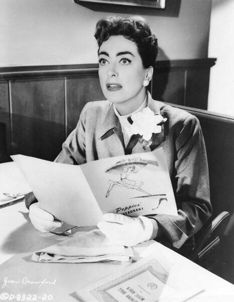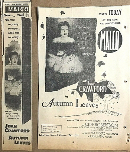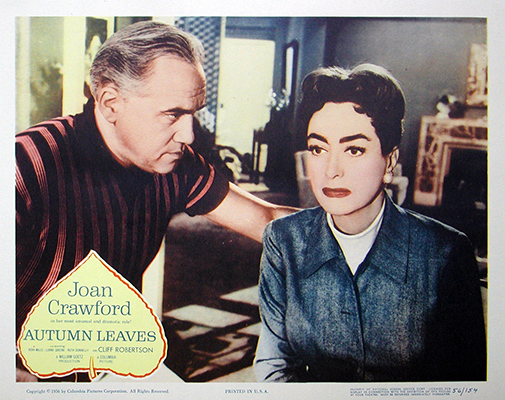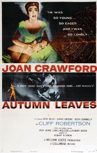 然而,正如Aldrich很快指出的那樣,與瓊克勞馥的合作也帶來挑戰。 「我很欣賞瓊克勞馥,她是一位自創的『方法』女演員,但我無法讓她成為一個單調的老年婦女,這打破了影片的平衡...... 大約在影片開始製作前一週,克勞馥小姐希望她自己的編劇過來重寫,我拒絕她的要求。 在我們預定開始拍攝的前一天凌晨兩點,我接到一個電話,說她當天晚些時候不會到場,除非她的作家可以參加,我回答說,如果她的作家出現,我們就不會拍攝。 回想起來,我真的認為這是你能正確對待克勞馥小姐的唯一方法。 作家沒有出現,但她出現了,然後我們繼續。但她大約有四、五天沒有跟我說話。她接受指導,做了她應該做的事情,但沒有任何個人交流。 然後有一天,她非常有效地表演了一場戲:我忘記是哪一場。我真的很感動,當她完成後抬起頭時,我盡量不明顯地擦掉眼淚。 這打破了僵局,從那時起我們就成為多年好友。(TCM) 到了1956年,克勞馥已不再是她在米高梅和華納時期的一線明星,但這並沒有阻止瓊在大多數演員和工作人員面前表現得像個大牌女伶。 編劇Bob Sherman被聘為[秋葉]的對話教練,他回憶起在Shaun Considine的傳記《貝蒂和瓊》中第一次見到她時的情景: