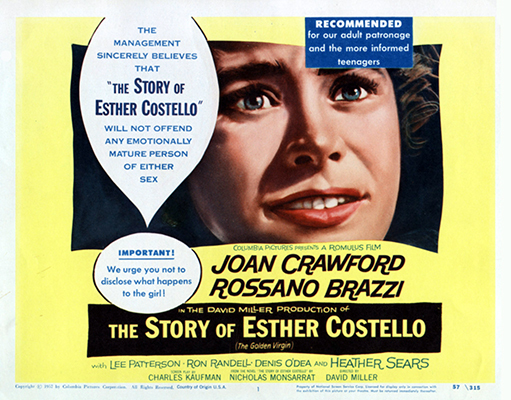 [The Story of Esther Costello]以美國為背景,由美國公司發行,但整個拍攝過程卻在英國。 這部通俗戲劇片根據Nicholas Monsarrat1952年出版的小說。 Charles Kaufman改編劇本(Samuel Fuller──最初劇本-未掛名). 小說主要關注大規模慈善機構募款背後的謊言以及參與者的自私本性。 講述十八歲的艾絲特自從母親死於意外後就一直聾啞。富有的瑪格麗特·蘭迪是愛爾蘭埃絲特村的當地人,她被說服幫助教育埃絲特,並可能治愈埃絲特。 瑪格麗特逐漸把艾絲特當作女兒來愛,但發現艾絲特的清白受到卑鄙的推銷者和她自己卑鄙前夫的威脅。