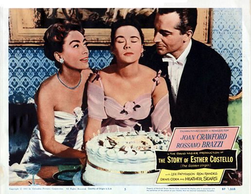 這部電影的暫定名稱是《The Esther Costello Story》和《The Golden Virgin/金處女》。 導演:大衛米勒David Miller.製片Jack Clayton+David Miller.John Woolf(uncredited).瓊克勞馥-聯合製片人(uncredited) Georges Auric音樂.Lambert Williamson音樂總監/作曲家 Robert Krasker攝影。Anthony Masters藝術指導. 服裝設計:Julie Harris*Jean Louis:服裝設計-克勞馥小姐.
