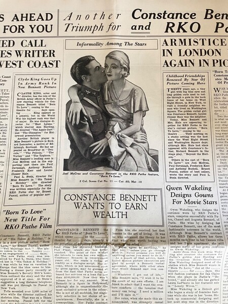 《TCM》Lorraine LoBianco, 2012: 康士坦絲班奈特和喬麥克雷是1930年代初頗受歡迎的銀幕情侶,他們合作了四部電影,[Born to Love]是他們的首部合作作品…