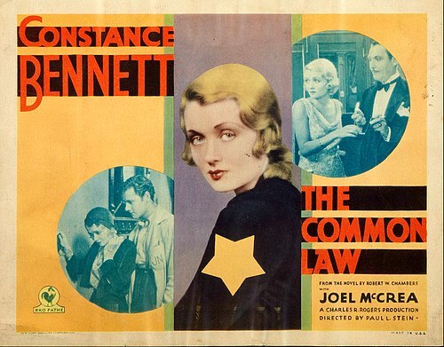 *********************** *********************** 接下來是RKO的[The Common Law/普通法/洩露春光] 這部前《守則》時期的浪漫劇情片改編自羅伯特·W·錢伯斯(Robert W.Chambers)1911年出版的同名小說,在當時成為暢銷書,並被稱為“錢伯斯迄今為止最大膽的作品”。 本片是小說的第三部電影改編作品,也是有聲電影時代首部改編電影。 約翰法羅(John Farrow)撰寫電影故事,Horace Jackson台詞. 講述年輕的瓦萊麗為一位想在巴黎闖蕩的美國畫家做模特,兩人墜入愛河。