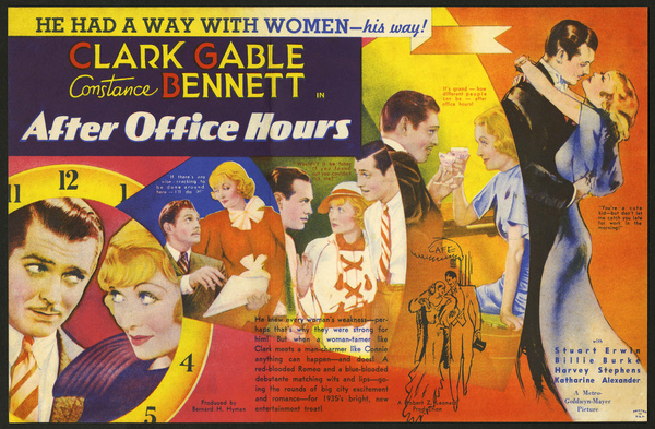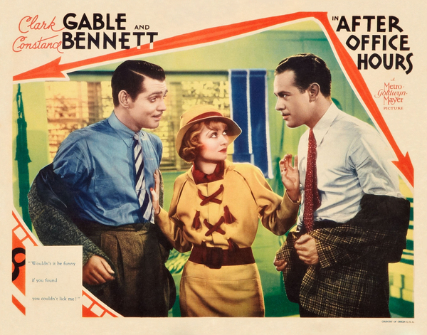 這顯然是米高梅試圖借用蓋博在哥倫比亞影業《It Happened One Nigh/一夜風流》(1934)的成功之舉。 米高梅收回他們的金童後,迅速讓他出演一部故事情節類似的[After Office Hours]。