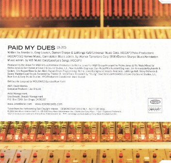 2001年11月23日,33歲的美國歌手安娜絲塔西亞(Anastacia)推出第二張錄音室大碟[Freak of Nature/自然怪胎](Epic Records/ Daylight Records發行)。 專輯主要由Ric Wake、Sam Watters和Louis Biancaniello製作,Richie Jones也參與製作。樂評褒貶不一. 首支單曲是[Paid My Dues/付清我的欠款] 由安娜絲塔西亞、Greg Lawson、Damon Sharpe和LaMenga Kafi創作, Ric Wake製作+Richie Jones額外製作成一首靈魂/R&B/搖滾曲, 在有勁的節拍間,安娜絲塔西亞以她渾厚的嗓音扎實表達. 《AllMusic》Jose F. Promis 稱這首歌是「一首深情而誇張的搖滾歌曲」。 《Slant》雜誌Sal Cinquemani:“她在《Paid My Dues》等歌曲中展現出的堅韌態度,為這位歌手開闢獨特的市場。” 《滾石》雜誌Aidin Vaziri:這首歌“令人不快”,是 [Freak of Nature]“純粹過度”的時刻之一。