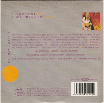 國際第二單曲/美國第一單曲是2002年2月推出的[One Day in Your Life/你生命中的一天] 由Sam Watters和Louis Biancaniello共同創作,並製作成一首靈魂/迪斯可/搖滾曲, 安娜絲塔西亞以她渾厚有力的嗓音恣意詮釋.