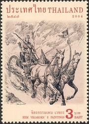 他描繪了鄉村生活、泰國歷史以及泰國古典文學中的人物。