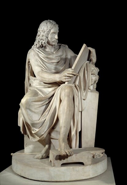 法國雕塑家──作品涵蓋洛可可和新古典主義等多種風格的[皮埃.朱利安] 皮埃.朱利安(Pierre Julien,1731年6月20日-1804年12月17日) 法國雕塑家,其作品涵蓋洛可可和新古典主義等多種風格。 早年在出生地聖保利安附近的勒皮昂韋萊(Le Puy-en-Velay)當學徒,之後進入里昂的巴黎雕塑學校(École de dessin),最後進入小紀堯姆·庫斯圖(Guillaume Coustou the Younger)的巴黎工作室。 1765年,朱利安以一幅以古代主題創作的淺浮雕作品榮獲羅馬雕塑大獎,隨後進入皇家學徒學校(École royale des élèves protégés),該校開設由畫家路易-米歇爾·凡·盧(Louis-Michel van Loo)指導的特別課程。 1768年至1773年,他在羅馬的法國學院(French Academy)領取養老金,在那裡,他受到影響同學的新古典主義思潮的影響。 正如退休老人所期望的那樣,他將一件略微縮小比例的大理石複製品從古董店寄回法國,這件複製品是梵蒂岡的“沉睡的阿里阿德涅”,即所謂的“埃及豔后”。這件複製品現存於凡爾賽宮。 1787年,路易十六委託朱利安為瑪麗安托瓦內特在朗布依埃的乳牛場創作。 回到法國後,他回到前主人身邊,為桑斯大教堂的大太子路易的陵墓創作了雕塑。 1776年,朱利安創作了《伽倪墨得斯》,但未能成功。 1778年,他受皇家繪畫與雕塑學院的接待,並獲得了《垂死的角鬥士》作為接待紀念品。 1795年,他被任命為法國研究院的創始成員之一,並於1804年被授予法國榮譽軍團騎士勳章。 朱利安受路易十六委託,代表國王樓(Bâtiments du Roi)主管安吉維萊爾伯爵(comte dAngiviller)創作一系列真人大小的法國偉人肖像畫: 他創作了一幅讓·德·拉封丹(Jean de La Fontaine)和一幅尼古拉·普桑(Nicolas Poussin)的肖像畫,普桑身著睡衣,衣擺近似羅馬托加長袍。 在巴黎為聖日內維埃教堂(現巴黎先賢祠)和盧浮宮花神館創作作品期間,他於1785年為朗布依埃宮中皇后精心佈置的乳品廠(La Laiterie)雕刻精美的大理石組合,描繪仙女阿瑪爾忒亞和哺育朱庇特的山羊;他模仿了著名的卡比托利歐的姿勢模仿了著名的卡比亞山模型。