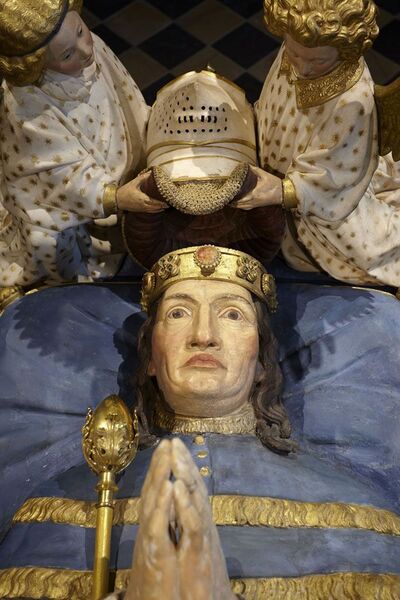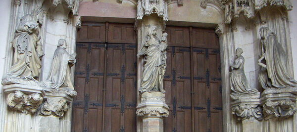 尚‧德‧馬維爾(Jean de Marville,卒於1389年7月) 十四世紀末雕塑家。他因在勃艮地成為歐洲主要文化中心的時期為勃艮地公爵大膽菲利普(Philip the Bold)創作的尚莫爾(Champmol)加爾都西會修道院而聞名。 從他的名字來看,德·馬維爾似乎出生於馬爾維爾(Marville),即如今法國北部默茲省(Meuse)的所在地。他曾在勃根地工作。 有人說他是佛蘭德斯人。他也被稱為Hennequin或Hannequin de Marvile、Jan van Mergem、Jehan de Marville或de Mervile。 參與創作大膽菲利普陵墓的尚·德·馬維爾(Jean de Marville)或亨內坎·德·馬維爾(Hennequin de Marville)已被確認為是1366年參與創作裡爾聖皮埃爾教堂的尚·德·門雷維爾(Jean de Menreville)。 據說他於1369年在魯昂大教堂工作,受法國國王查理五世之命,協助裝飾國王之心禮拜堂。 1372年1月22日加入大膽菲利普一世麾下,擔任主教的御用雕刻師兼貼身男僕。 隔年,他奉公爵之命遷往第戎。 休士頓美術館收藏的三位一體象牙雕像可能出自他之手。