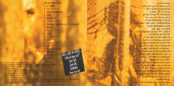 1990年代中期,美國音樂鬼才巨星王子(Prince)為擺脫與華納兄弟的合約義務,開始接連發行專輯。 王子力推他的接下來兩張專輯[Come]和[The Gold Experience]同時發行。 華納接受這兩張專輯,但由於擔心市場飽和,推遲了[The Gold Experience]的發行。 作為報復,Prince開始在公開露面時臉上寫著「奴隸」二字。 1995年9月,王子推出第17張錄音室大碟〔The Gold Experience/金色體驗〕(NPG/Warner Bros.) 專輯中的歌曲由王子譜寫(除兩首歌曲與他人合寫),編曲,製作。 這張專輯已他當時的藝名掛名──一個無法發音的符號(出現在專輯封面上),也被稱為「愛情符號」。 〔The Gold Experience〕受到一致好評,拿到滾石雜誌四顆星評價,