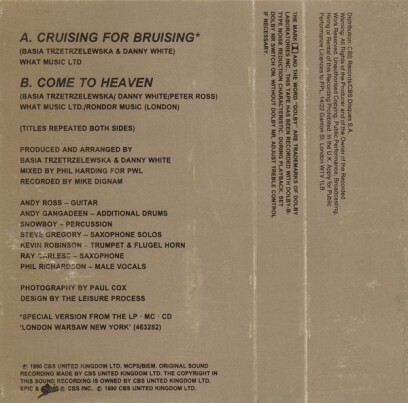 商業依舊成功,在世界又賣出兩百多萬張: 美國專輯榜#20──白金唱片(100萬張+)(1990年榜#59) 副榜──當代爵士專輯榜冠軍(1990年榜#1) 法國#28──金唱片(10萬張+) 日本#33 加拿大#56 荷蘭#60 英國#68. 首支主打[Cruising for Bruising/為療傷巡遊]登上: 美國單曲榜#29 副榜──成人當代榜#5 加拿大#21 法國#46 荷蘭#54 英國#86.澳洲#161. 其B面歌曲為[Come to Heaven/來天堂吧] Danny White與Peter Ross製作成一首爵士-流行/高雅流行(sophisti-pop), 在中板的節奏中,芭莎時而用輕柔,時而高昂的嗓音表現,展示其豐美的歌喉. [Come to Heaven]並未收在芭莎的錄音室大碟中, 1990年,芭莎發行迷你選輯EP[Brave New Hope/美麗新希望], 才收錄此曲.