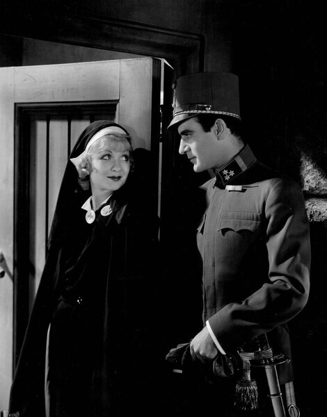 但儘管貝內特在銀幕上保持著一種疏離感,使她的表演顯得像是出於一種善意,順應著她深諳的劇本,不讓我們過分認真地對待它,但她還是在河岸邊與吉伯特深情擁吻,彷彿帶著一絲憤世嫉俗,聲音中透著飽經世故希望的苦澀,即便渴望愛情能夠實現愛情。 或許應該在此說明,RKO並非派拉蒙或米高梅,影片的世界,除了穿插的一戰新聞短片戰鬥片段之外,完全是一個攝影棚,有時甚至採用逆光拍攝的歐洲場景,配以啞光背景和背投技術,戰爭的摧殘似乎從未影響到任何人的妝容。