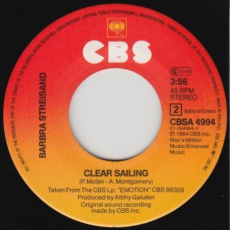 Clear sailin From now on 1984年秋天, 42歲半的美國影歌天后芭芭拉.史翠珊(Barbra Streisand)發行第23張錄音室專輯〔Emotion/情感〕(Columbia出版) 這是她自事業最暢銷專輯──英美冠軍〔Guilty〕(1980)後第一張全新內容的錄音室大碟 製作群包括Maurice White, Albhy Galuten, Jim Steinman, Kim Carnes and Richard Perry與史翠珊自己。 樂評中等, 雖然製作精良, 但缺乏一貫性。 由於單曲反應不佳, 導致專輯只升到#19, 英國#15便往下掉 雖然在美國仍拿到百萬白金唱片, 英國也拿到金唱片(10萬張+)