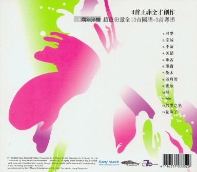如果我還有哀傷 讓風吹散它 如果我還有快樂 也許吧 2003年11月7日,34歲的華人樂壇女皇王菲發行第19張大碟/第10張國語專輯[將愛](Abel/新力唱片) 這是她以所屬銀魚音樂的身份加盟新力音樂的唯一錄音室大碟, [將愛]由老搭檔張亞東與王菲兩人共同製作。 大碟共13首歌曲:10首為國語,3首為粵語,其中2首粵語歌是將專輯中2首國語歌重新填詞為粵語; 2首為翻唱瑞典音樂人蘇菲·珊曼妮(Sophie Zelmani)的一首歌,分為國語版和粵語版。這是王菲時隔6年後再度翻唱歐美音樂人的歌曲。 [將愛]發賣僅一週,在亞洲地區的出貨量便突破100萬,其中一半在中國大陸銷售。 拿到IFPI香港唱片銷量大獎:2003年度:十大銷量國語唱片—《將愛》 自2003年12月起,王菲舉辦[菲比尋常]巡迴演唱會,歷經十三個月,16場,票房成功,共有48萬人與會. 香港門票銷售並創下新紀錄。 [不留]是主打之一,由王菲創作,張亞東編曲, 王菲+張亞東製作成一首另類流行/電子流行/夢幻流行, 編曲營造出神秘夢幻的空間感, 在穩定的節奏中,王菲以時而呢喃,時而輕吟的唱腔交替演繹.[不留]大受好評, 在2004年,王菲在台灣第15屆金曲獎獲得8項提名,[不留]便占了四項. 最佳國語女演唱人獎(得獎) 最佳流行音樂演唱專輯獎(提名) 最佳專輯製作人獎:王菲、張亞東(提名) 最佳作詞人獎:王菲—「不留」(提名) 最佳作曲人獎:王菲—「不留」(提名) 最佳編曲人獎:張亞東—「不留」(提名) 最佳編曲人獎:林海—「空城」(提名) 最佳音樂錄影帶獎:黃中平—「不留」(提名)