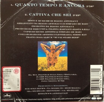 1998年5月,34歲半的義大利歌壇創作巨星比亞喬安東納奇(Biagio Antonacci)推出大碟[Mi fai stare bene/你讓我感覺很好](Mercury / PolyGram唱片發行),由比亞喬安東納奇製作, 登上義大利週榜冠軍,月榜#2,1998年榜#5, 賣出70萬張,取得鑽石唱片. 另拿到瑞士#44,歐洲專輯榜#29(1998年榜#97). 第二單曲為[Quanto tempo e ancora/還有多少時間] 由比亞喬安東納奇創作,並製作成一首軟式搖滾抒情曲, 旋律優美,編曲以吉他主導,比亞喬以輕吟的方式詮釋. 此曲獲得金唱片認證(2009年後銷售).