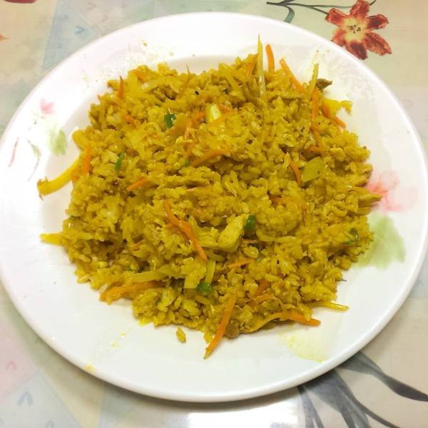 3-18晚餐: 地點:台中市博館東路。越棧小吃 這道炒飯以雞絲,紅蘿蔔絲,洋蔥,蔥花炒製而成,