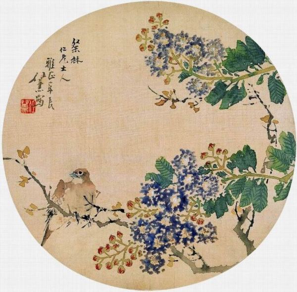 任薰(1835-1893),字舜琴,又字阜長,其父任椿,兄任熊都是畫家。 少喪父,從兄學畫,青年時在寧波賣畫為生,1868年與任頤去蘇州,後寓居蘇州、上海。 任頤、任預均從其習畫。人物與其兄同師陳洪綬,常用高古遊絲、鐵線、行雲流水、蘭葉幾種描法。 尤精雙鉤花鳥,時稱「任阜長精於繪事,名噪當時。」 任薰治學嚴謹,在寫生、臨摹上均下了苦功夫。 任薰兼工人物、花鳥、山水、肖像、仕女,畫法博採眾長,面貌多樣,富有新意。 與顧文彬子顧承相友善,曾為設計怡園。 1888年54歲時雙目失明,後病卒于蘇州。 與任熊、任頤時稱“三任”,合任預為“四任”,並為海上畫派代表畫家之一。